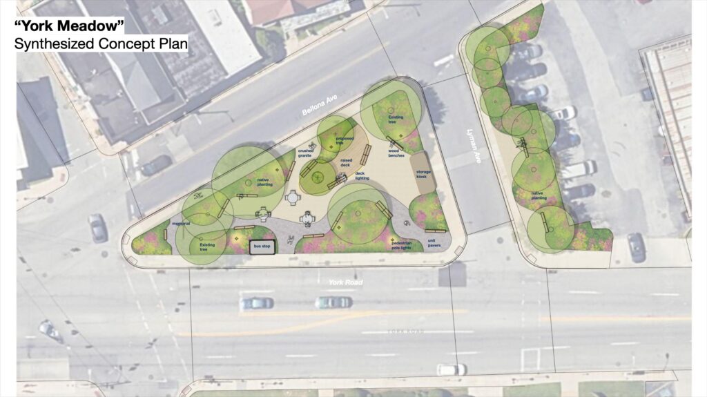 The design that emerged from this process, dubbed “York Meadow,” will include “a raised deck that could be used for performances and events and be just a welcoming gathering space,” Glase said.